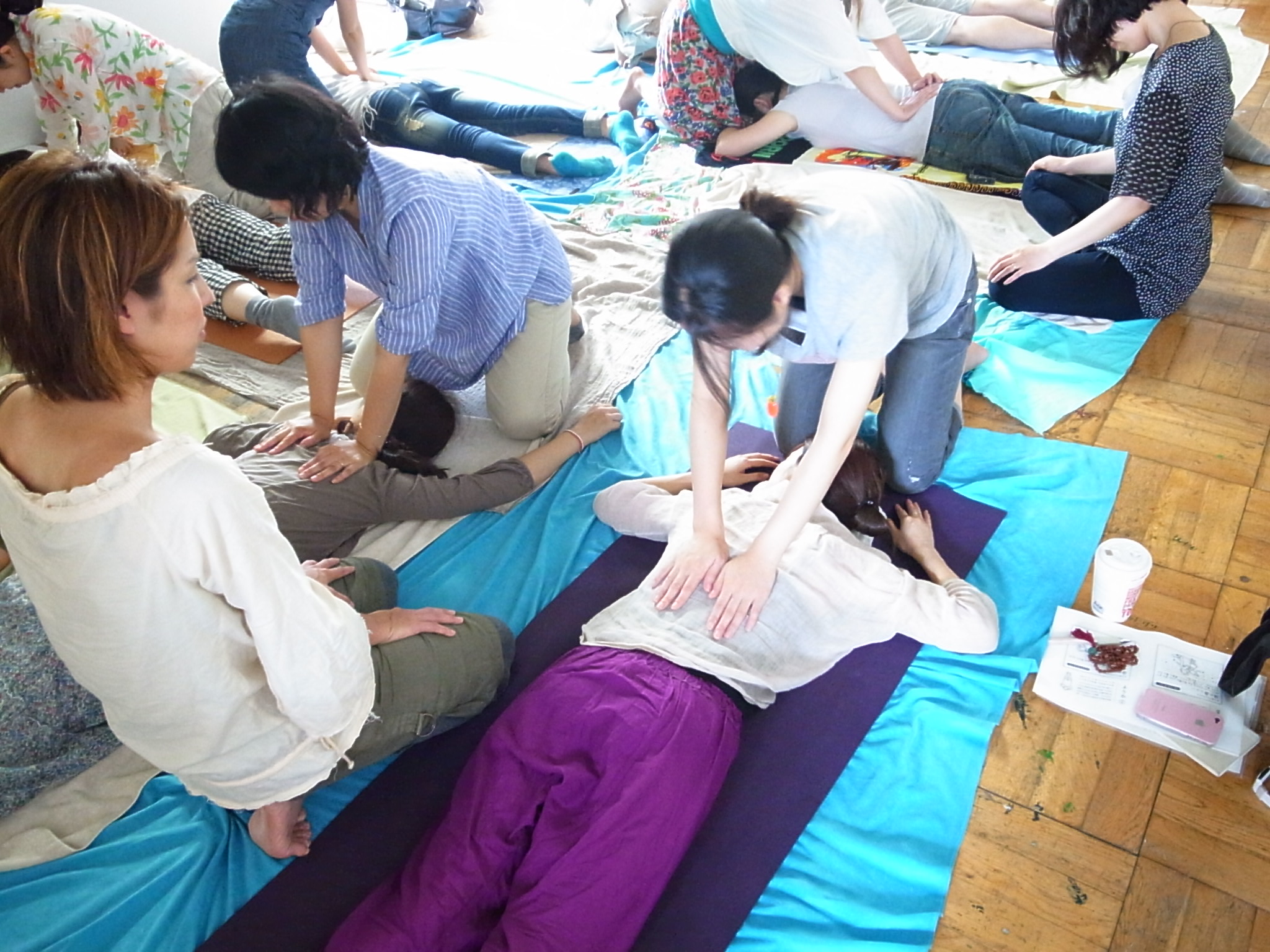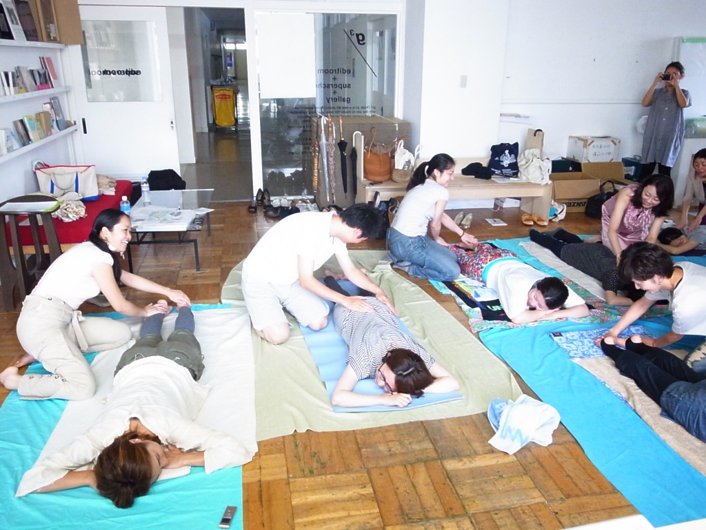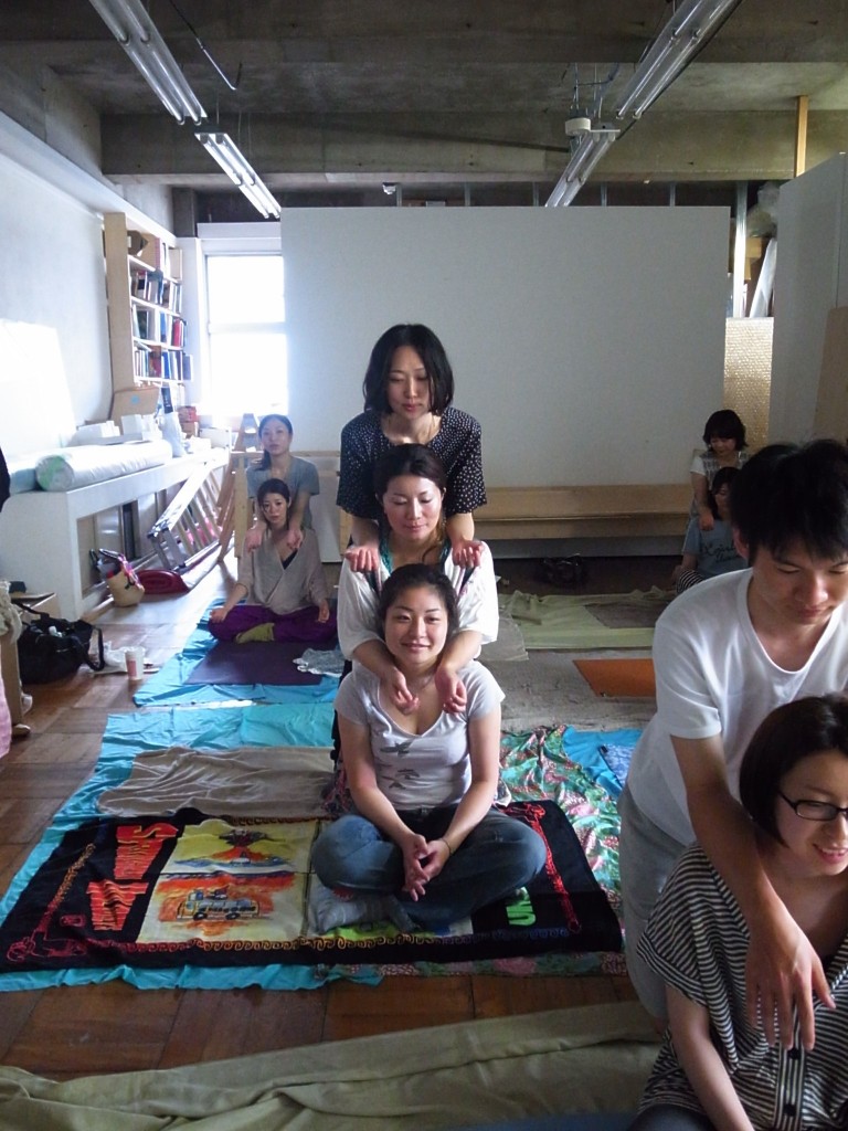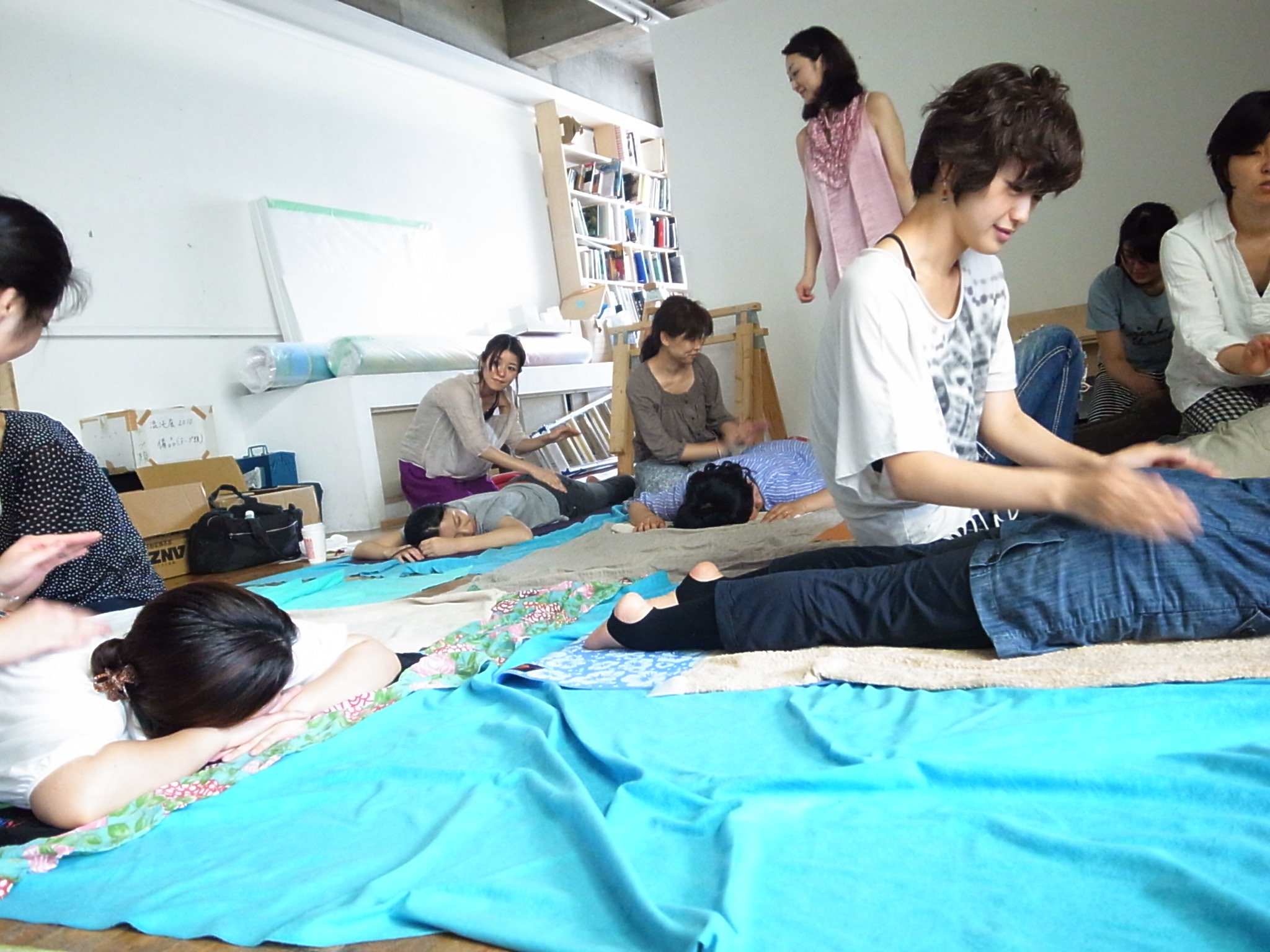「7月31日(日)whole treat すこやか からだ塾 —知る、ゆるめる、暮らす―」写真レポート 2011年8月2日 by hugmomi Leave a comment Tweet第3回目の今回は「ハグモミ」 ゲストにshiholy ゲストはshiholy 実際にやってみよう! 渚&shiholy くまさんのしのし たいこ、とん!とん! 3人でもできる♪ ハグモミグッズ☆めぐちゃんデザインです。 お知らせ shiholy, 手島渚
